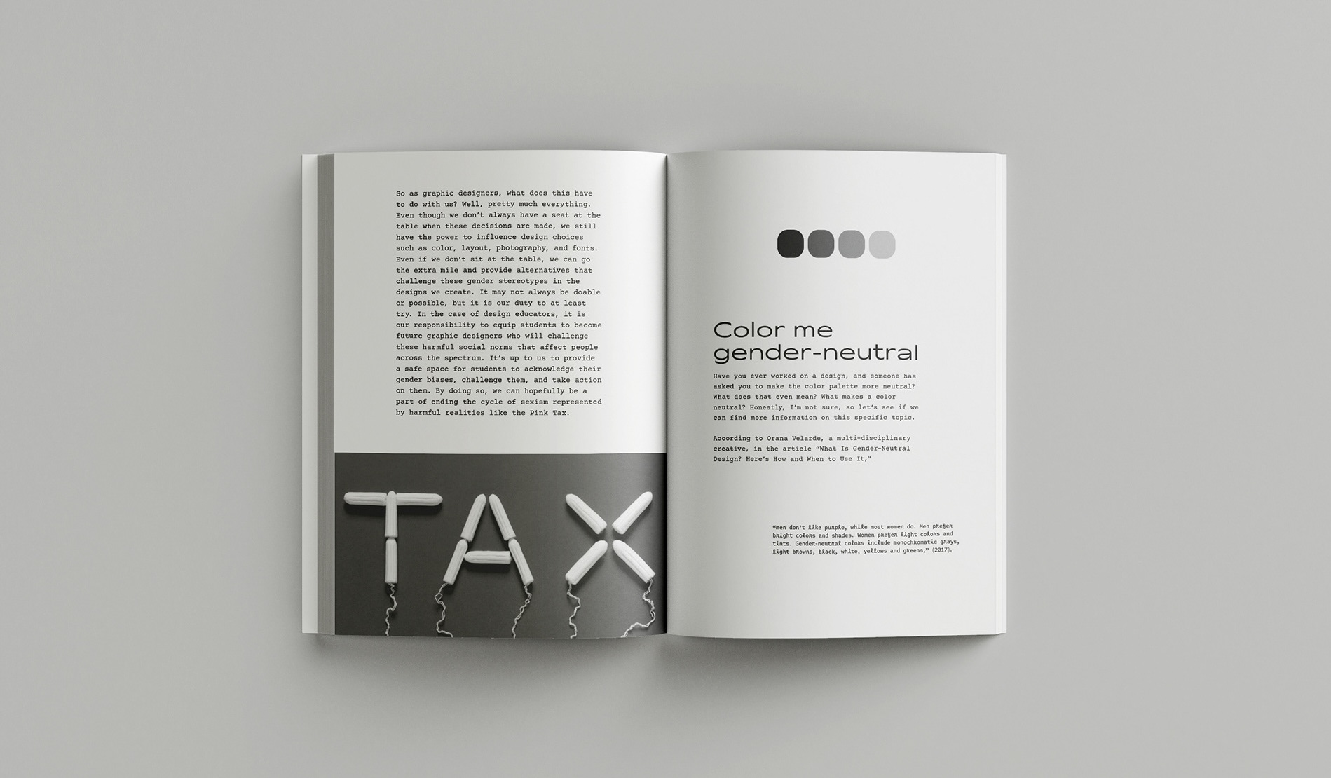 Pink Circles, Blue Squares is a self-published research project that examines how gendered assumptions are embedded in visual culture, particularly within design education and professional practice. The work reflects on how seemingly neutral choices in color, form, language, and systems often reproduce binaries and reinforce exclusion.