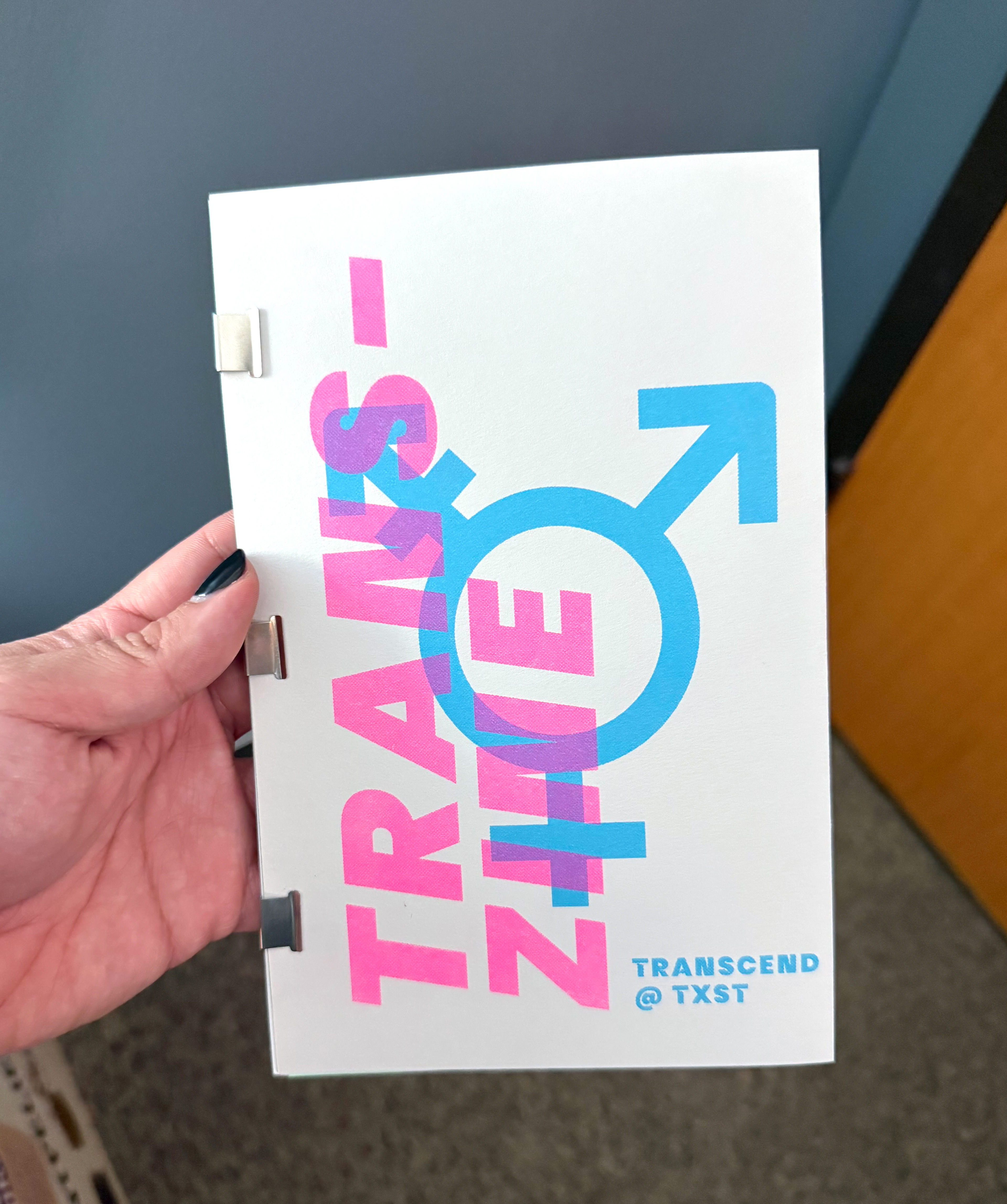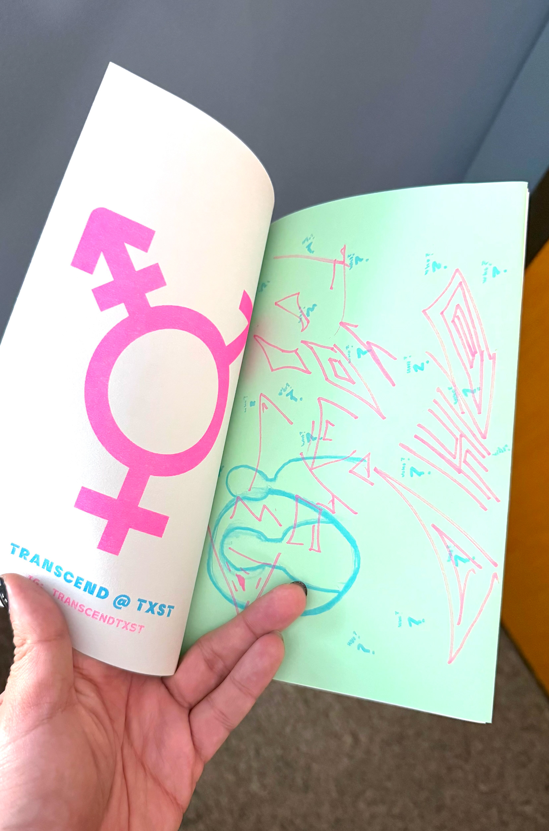 This collaborative zine, titled Trans-Zine, was created in connection with Transgender Day of Remembrance through Transcend, the student-led transgender organization at Texas State University, where I serve as faculty advisor. The zine was developed as a space for reflection, remembrance, and collective care, centering trans and gender-expansive voices during a time of grief and solidarity.