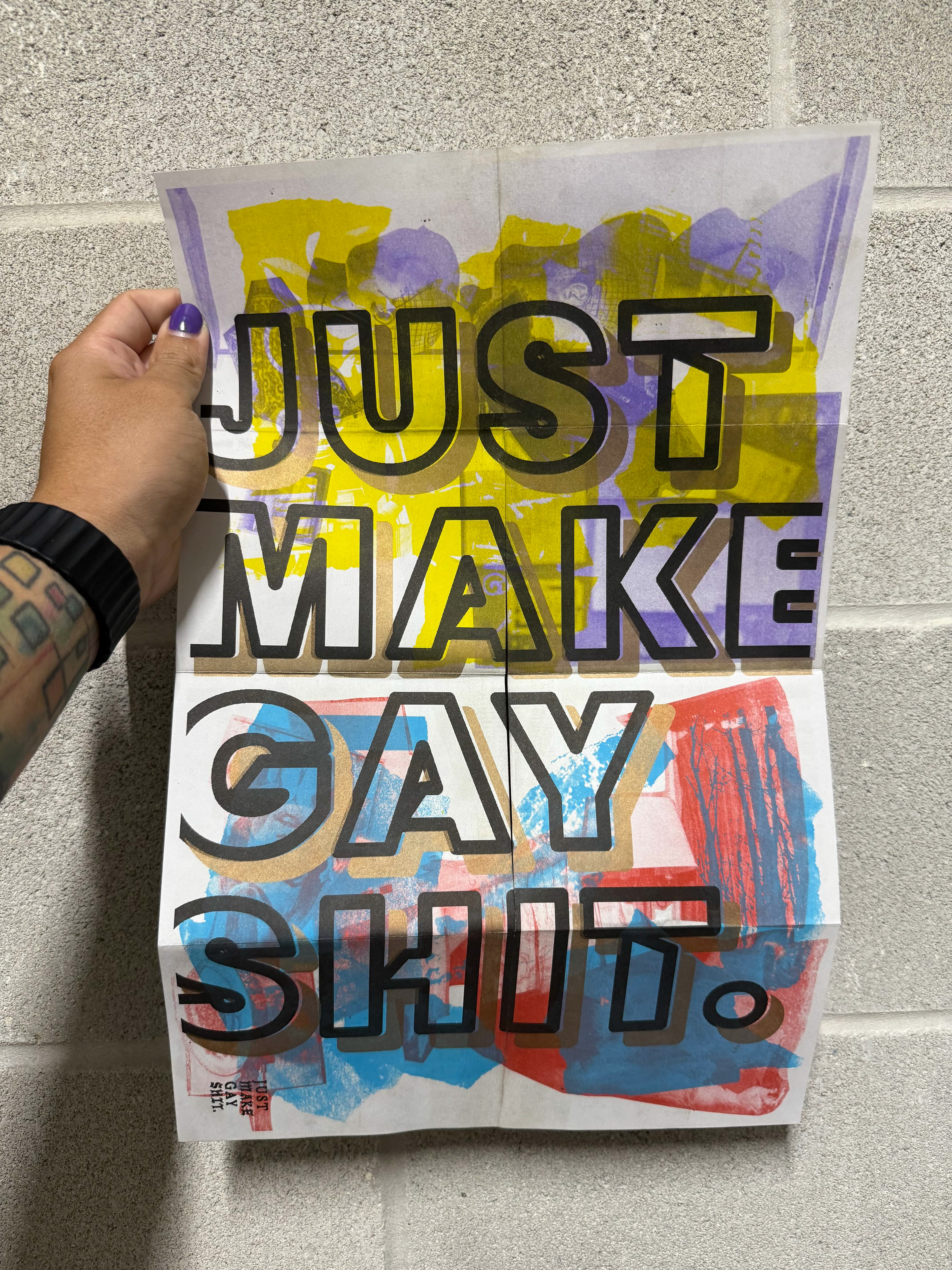 Risograph printing is central to the project’s intent. Historically associated with grassroots publishing, zines, and protest movements, risograph enables low-cost, high-volume production and wide distribution. Its visible layers, bold color, and imperfections resist polish and neutrality, reinforcing the urgency and humanity of the message. The process of producing multiple test prints reinforces the project’s emphasis on accessibility, repetition, and collective use rather than singular authorship.